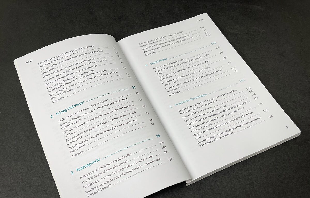 Ich habe nicht alle Unterkapitel aufgeführt, aber man sieht schon, dass das Buch sehr umfassend über das Thema Fotorecht im Internet informiert.