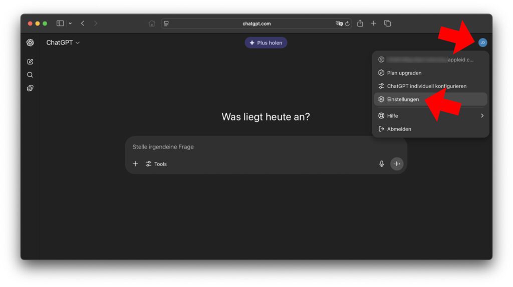 - Die Webseite chatgpt.com aufrufen und mit dem Account anmelden (wenn man schon angemeldet ist, muss man den Login als Sicherheitsmaßnahme vor dem Löschen bestätigen)