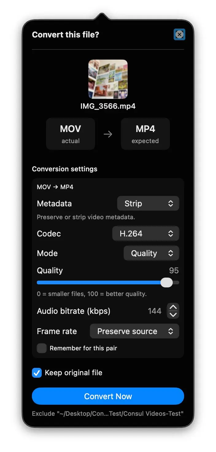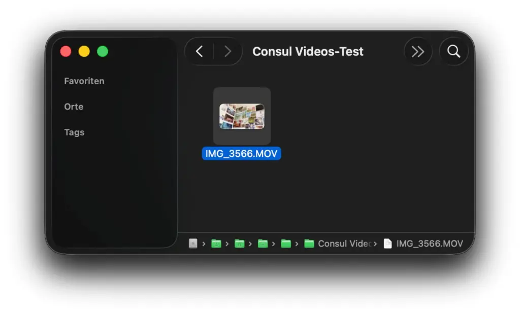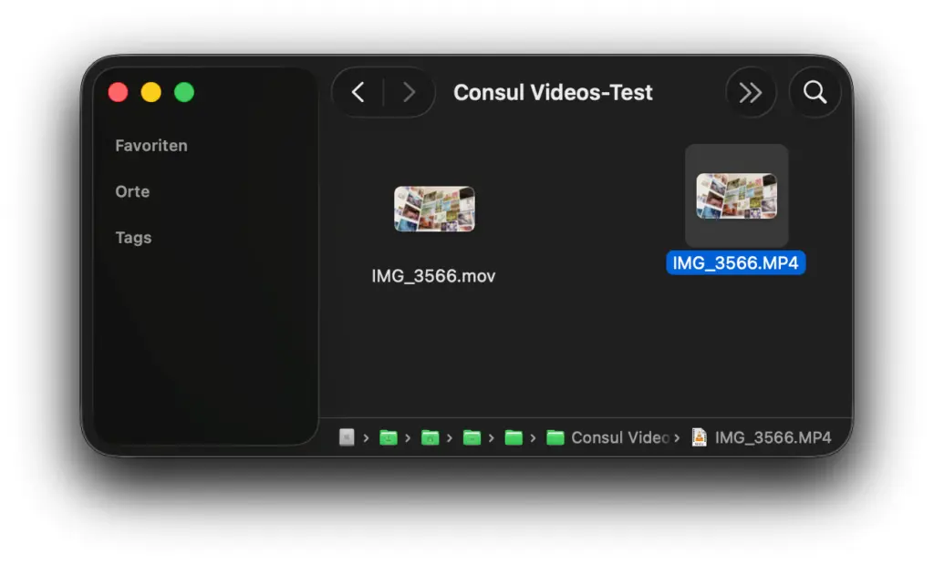 Für diesen Test habe ich ein Video mit dem iPhone aufgenommen und auf mein MacBook Pro (M1 Pro, 16 GB RAM) übertragen. Im überwachten Testordner habe ich es dann von .MOV zu .MP4 umbenannt.