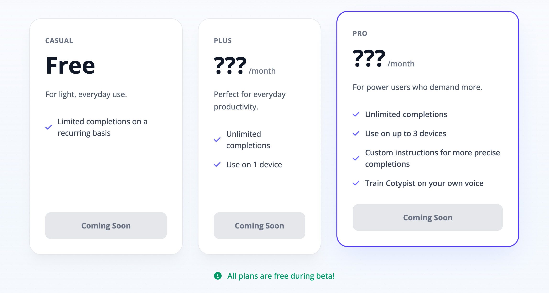 Aktuell ist Cotypist kostenlos, weil sich die App noch in der Beta-Phase befindet. Das wird aber nicht so bleiben. Auf der Webseite sind schon Preise angekündigt: Es soll eine kostenlose Version mit Einschränkungen geben und ein Abo-Modell für die volle Funktionalität.
