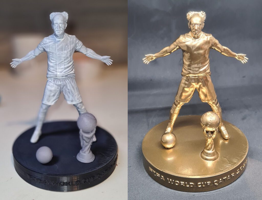 Wenn ihr genauso wenig Lust auf die Fußball-WM habt wie wir, dann könnt ihr den Creality CR-Scan Lizard sowie einen 3D-Drucker nutzen, um eure eigenen Pokale, Medaillen, Cups und andere Auszeichnungen zu gestalten. Mit den richtigen 3D-Modellen – entweder selber gemacht oder aus dem Netz geladen – sowie eurem eigenen, mit dem 3D-Scanner digitalisierten Gesicht habt ihr die Möglichkeit, euren ganz eigenen WM-Sieg zu zelebrieren. Auch wenn dieser darin besteht, dass ihr die WM in Katar aus Protest nicht geschaut und auch nicht mit sonstigen Aktionen unterstützt habt. So wie auf dem folgenden Foto kann das Ganze dann aussehen: