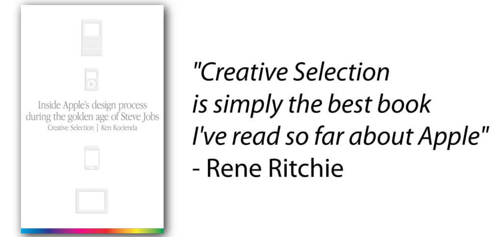 Ken Kociendas Buch Creative Selection: Inside Apple's Design Process During the Golden Age of Steve Jobs ist offiziell erst ab morgen draußen, kann aber bei Amazon scheinbar schon seit einiger Zeit bestellt werden. Das Werk mit 304 Seiten in Englisch lässt sich als Kindle-Version (9,99 EUR), als gebundene Ausgabe (18,66 EUR) oder als Taschenbuch (13,99 EUR) kaufen. Mit einem Audible-Abo ist das Hörbuch kostenlos erhältlich. Die Produktseite mit der Auswahl der einzelnen Versionen, einem Blick ins Buch und einer Hörprobe des Hörbuchs findet ihr mit diesem Link.