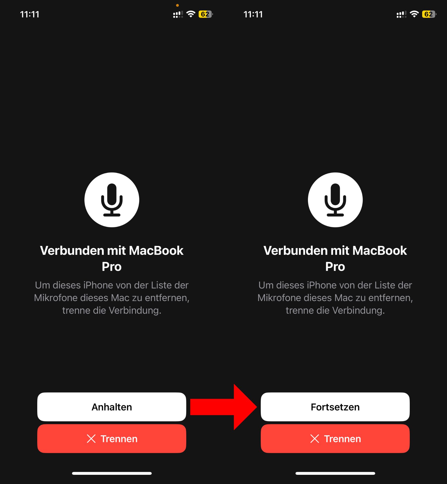 - 4 Ich habe auf „Trennen“ getippt! Wie kann ich das iPhone erneut als Mikro nutzen?
