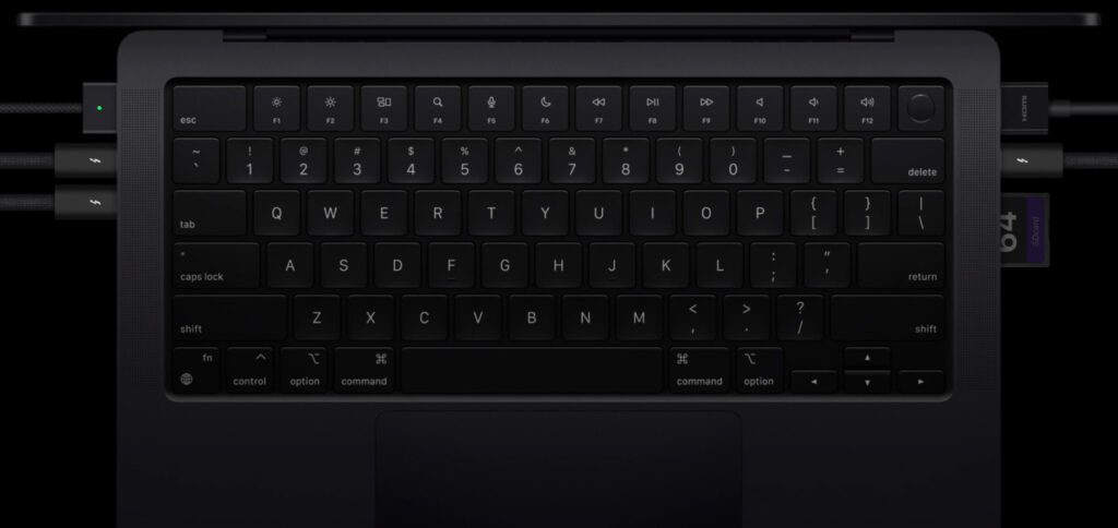 Das Medium Video wäre aber nur halb so gut, wenn nicht auch das Audio hochwertig ist. Deshalb weist Apple auf folgendes hin: „Mit Mikrofonen in Studioqualität sowie einem phänomenalen 6‑Lautsprecher-System mit Unterstützung für 3D Audio ermöglicht das MacBook Pro ein unglaublich immersives Audioerlebnis, wenn Nutzer:innen Musik hören oder einen Film in Dolby Atmos ansehen.“