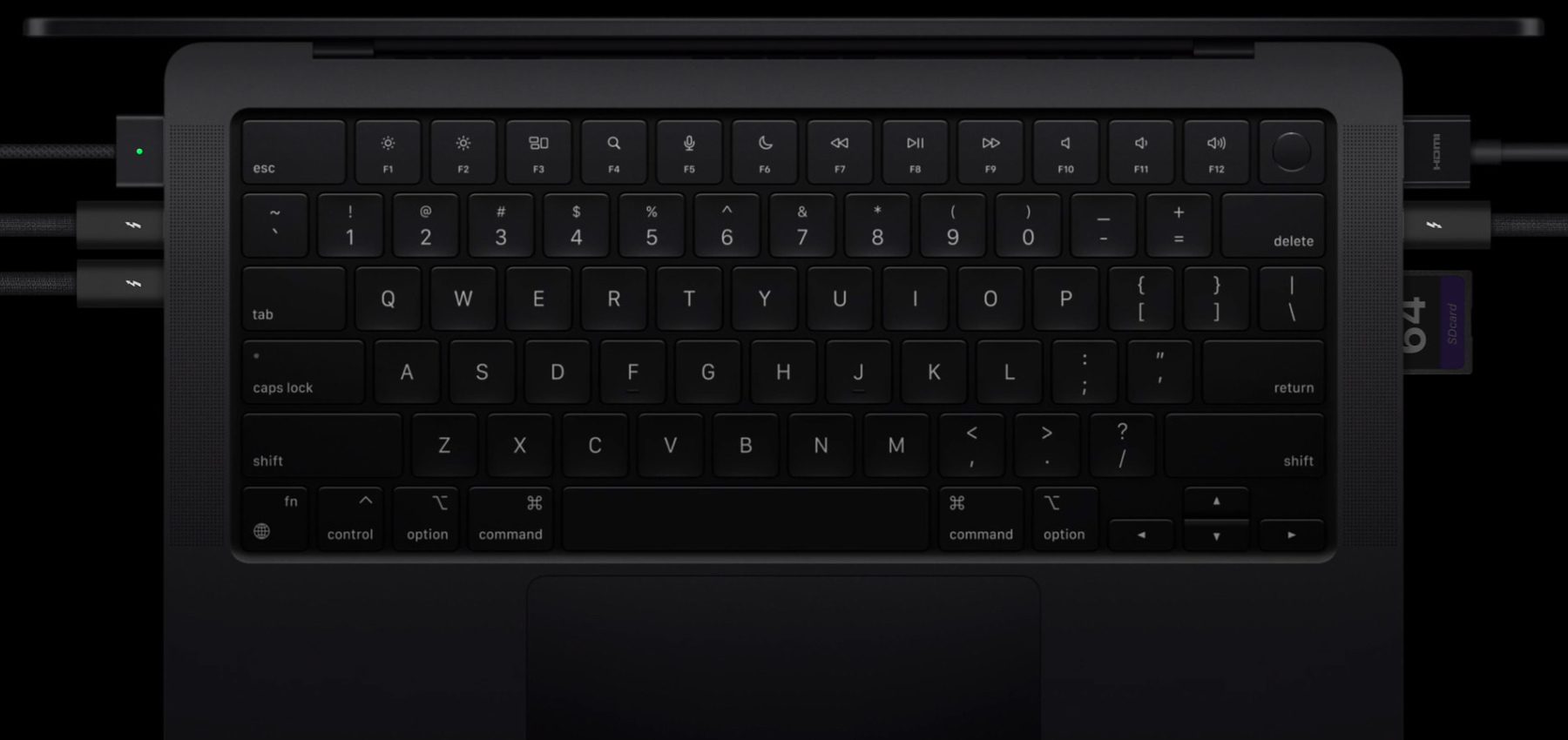 Wie beim gestern vorgestellten Mac mini ist es auch beim neuen MacBook Pro so, dass die M4-Modelle weiterhin mit Thunderbolt 4 ausgestattet wurden. Nur wer sich für die leistungsstärkeren Chips, also M4 Pro oder M4 Max, entscheidet, bekommt die neue Thunderbolt-5-Technologie. Diese bietet bis zu 120 GBit/s Datengeschwindigkeit. Wie gehabt gibt es drei Anschlüsse dieser Art, nebst einem MagSafe-3-Anschluss, HDMI, SD-Karten-Reader und einen 3,5 mm Klinke-Kopfhöreranschluss.
