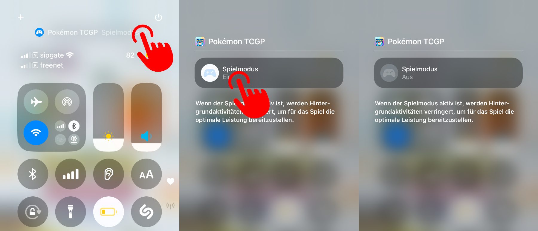- ODER: Das Kontrollzentrum öffnen (von oberer rechten Ecke nach unten wischen) und oben auf „Spielmodus“ tippen