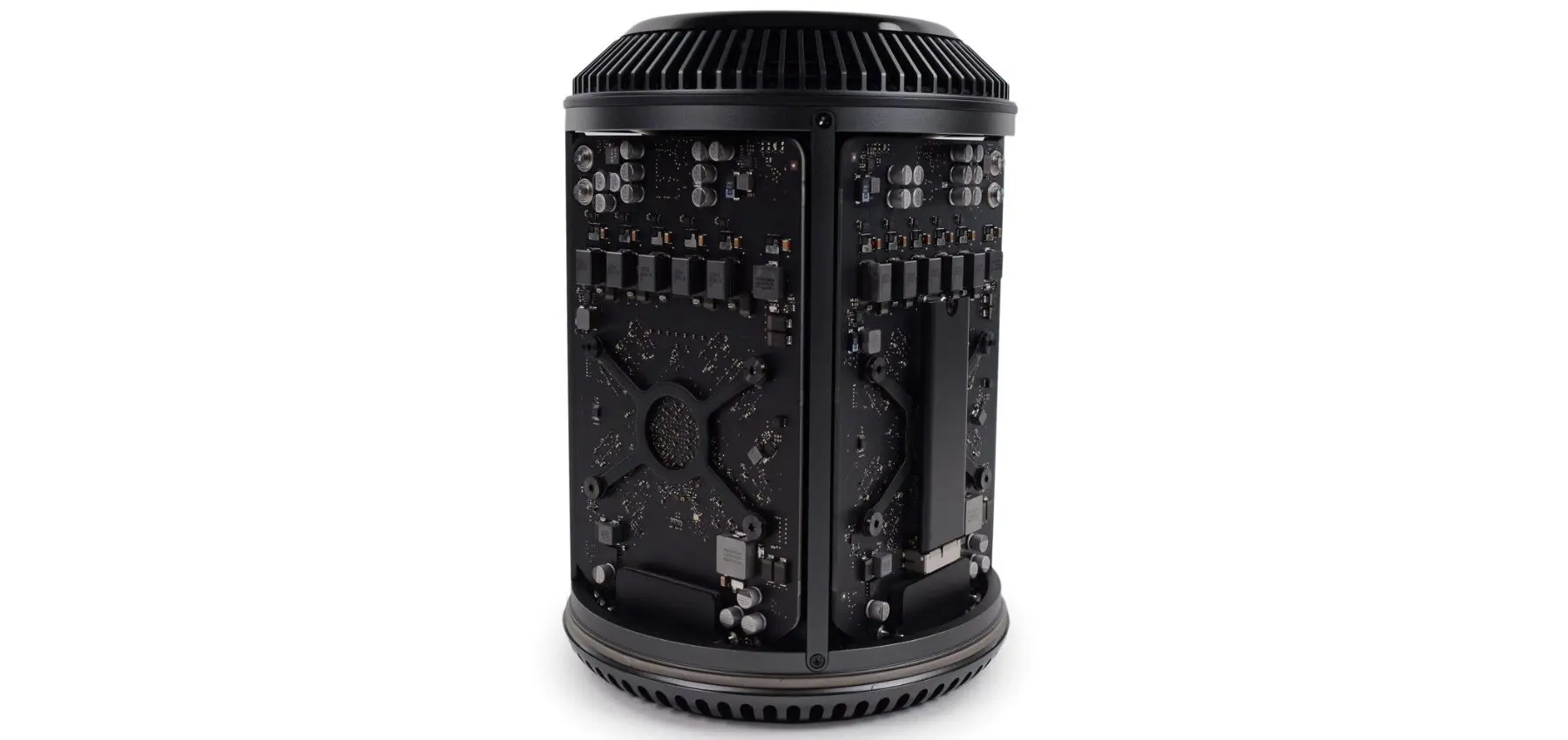 Dann kam der „Mülleimer“. Apple brachte 2013 die zweite Generation des Mac Pro auf den Markt. Dieser war als schwarzer Zylinder designt und sah wie kein Computer vor ihm aus, sondern eher wie ein Papierkorb oder eine kleine Mülltonne.