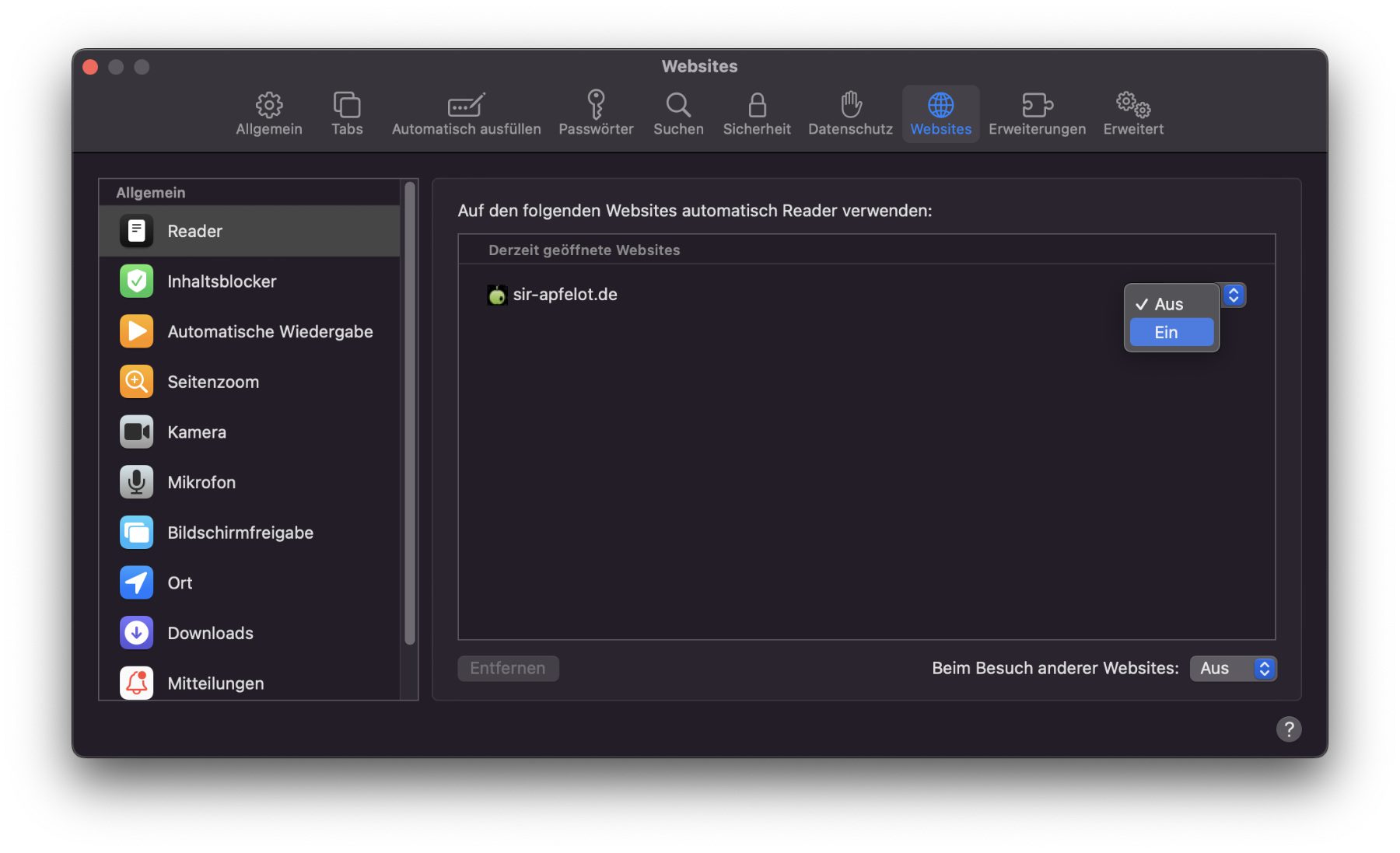 Tipp 2: Safari Reader-Ansicht automatisch aktivieren lassen