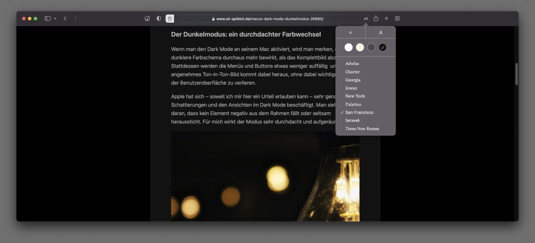 Mit macOS Mojave wurde 2019 der Dunkelmodus auf dem Mac eingeführt. Vorteile des Dark Mode haben wir etwas später im Februar 2020 aufgezeigt. Letztens gab es dann unter diesem Beitrag den kurzen Kommentar „Diese Internetseite kennt den Dunkelmodus leider immer noch nicht…“ vom Leser Martin. Tja, das ist nunmal so. Wer nun keine Beschwerde loswerden, sondern eigenverantwortlich dafür sorgen will, dass Webseiten (nicht nur die von Sir Apfelot) am eigenen Mac in Safari mit dunklem Hintergrund und heller Schrift angezeigt werden, ist hier richtig. Denn man muss nicht das Fehlen einer Dark-Mode-Funktion monieren, wenn man auch einfach den Reader nutzen kann.