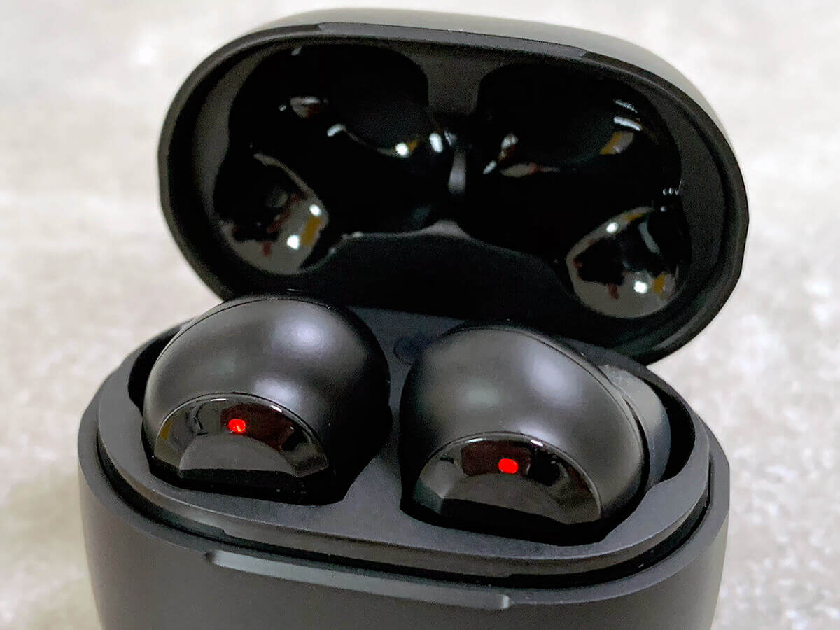 Das Ladecase ist ebenfalls einfach gehalten und besitzt neben einer LED für den Ladestatus nur einen Button, der im Inneren zwischen den beiden Plätzen für die Ohrhörer liegt. Was ich positiv finde: Im Gegensatz zu den AirPods-Boxen kann man das EarFun-Case auch hinstellen.