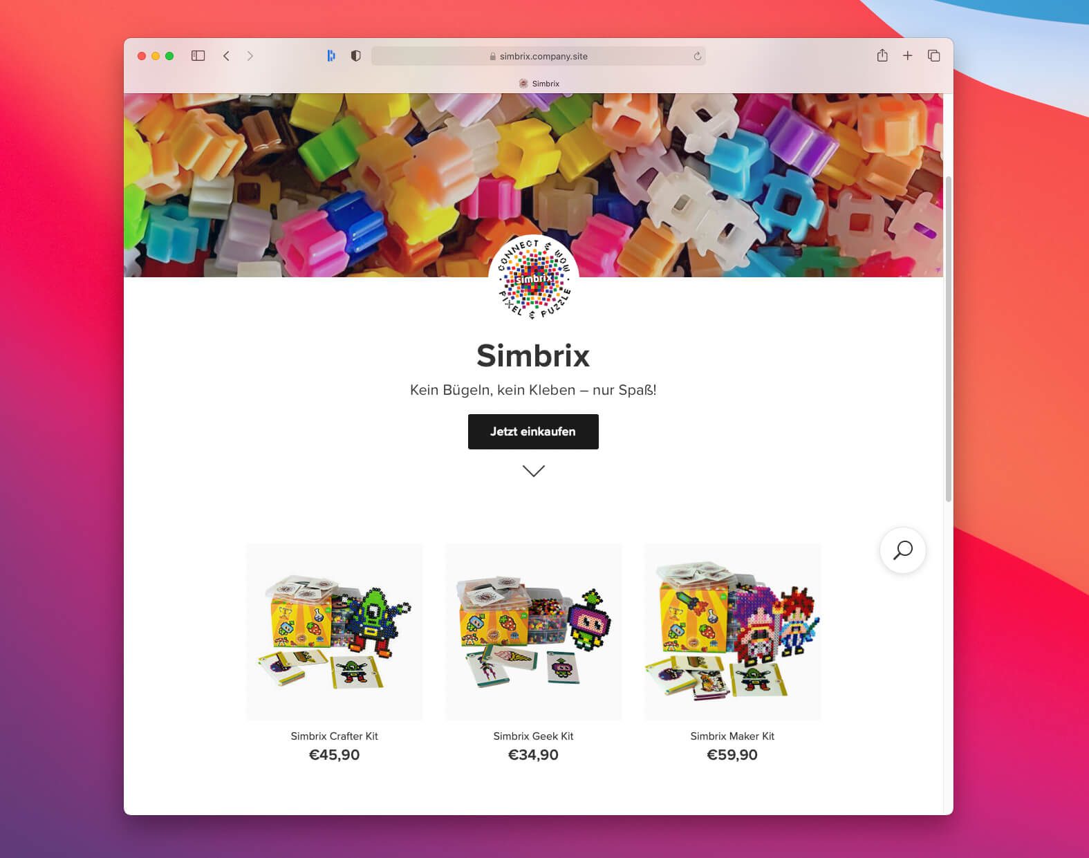 Die Simbrix-Kits gibt es nur in drei Ausführungen, weshalb der Bedarf an Kategorien und Varianten bei den Produkten nicht vorhanden ist. Auch die Menge an Produktseiten liegt damit bei der überschaubaren Zahl von drei.