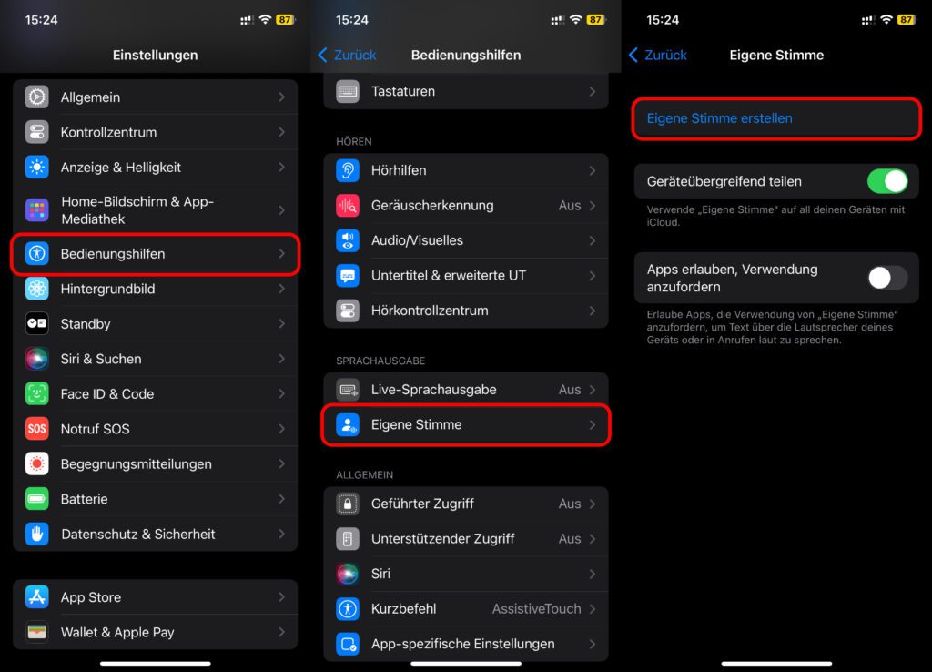 So richtet ihr „Eigene Stimme“ / „Personal Voice“ am iPhone oder iPad ein: