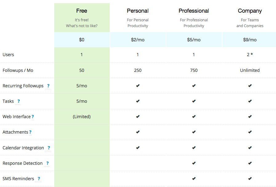 Als Gratis-Nutzer hat man übrigens 50 Followups pro Monat frei und kann bis zu 5 wiederkehrende Followups (Erinnerungen) anlegen. Für schlappe 2 USD pro Monat ist man aber schon in einem Tarif, der bis zu 250 Followups pro Monat erlaubt. Eine Begrenzung für wiederkehrende Followups gibt es nicht.