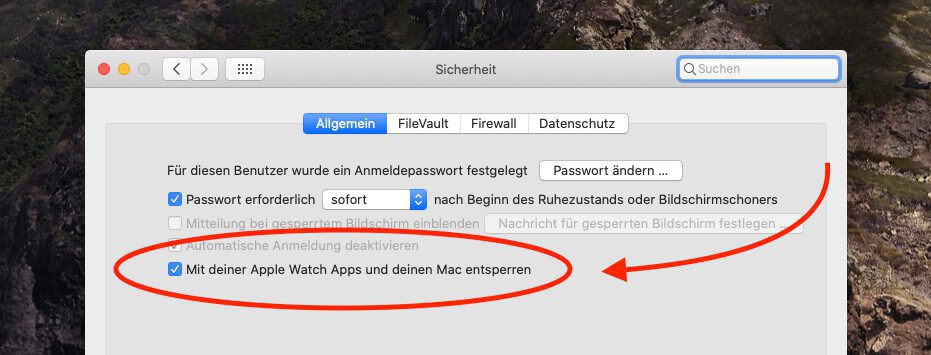 - dann in Systemeinstellungen > Sicherheit die Funktion für das Entsperren mit der Watch aktivieren