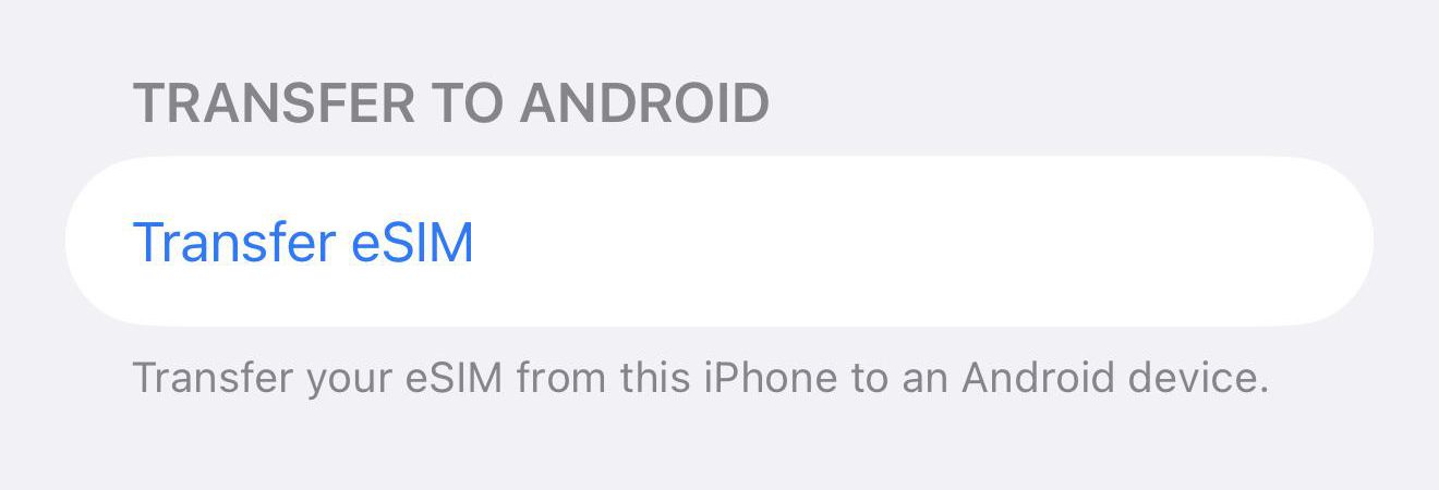 Zum Beispiel auf Reddit zeigt ein User die neuen Mobilfunk-Einstellungen von iOS 26 auf. In der installierten Developer-Beta wird ganz unten der neue Bereich „Transfer to Android“ angezeigt. Darin lässt sich die Option „Transfer eSIM“ antippen, um die auf dem iPhone installierte eSIM auf ein Android-Smartphone oder -Tablet zu schicken.