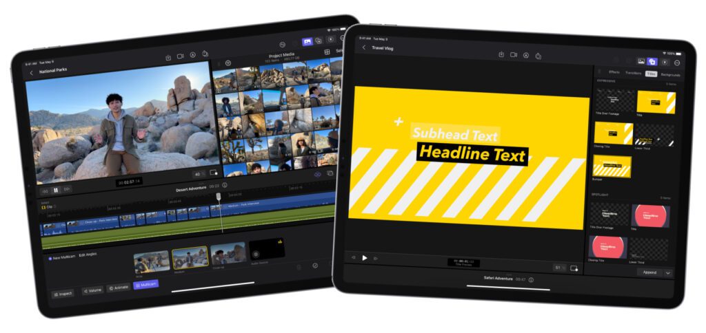 Neue Werkzeuge, etwa ein Jog Wheel zum Scrollen durch das Videomaterial, sollen den Videoschnitt am iPad einfacher als je zuvor machen. Verschiedene Multi-Touch-Gesten sollen ebenfalls dabei helfen, verschiedene Bearbeitungsschritte schneller zu erledigen. Die Frame-genaue Bearbeitung soll dabei genauso möglich sein wie am Mac. Wer handschriftliche Titel oder Einblendungen verwenden will, kann diese direkt mit dem Apple Pencil erstellen. Für die Bearbeitung von HDR-Videos und die farbgenaue Bearbeitung im richtigen Referenzmodus kann das 12,9 Zoll iPad Pro mit Liquid Retina XDR Display verwendet werden. Auf M2-iPads kann zudem die Schwebefunktion des Apple Pencil 2 genutzt werden, um eine Vorschau von Videomaterial anzuzeigen.