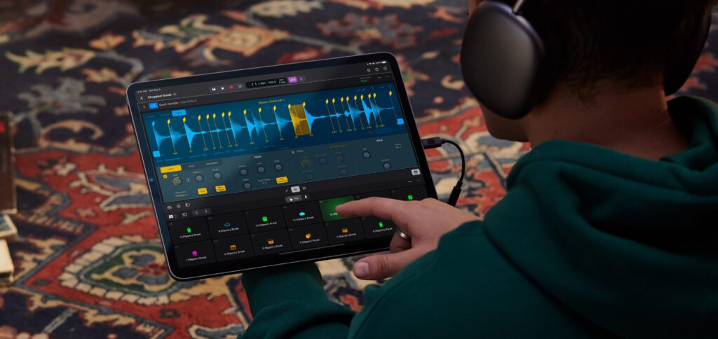 Für den Einsatz auf dem iPad wurde der Soundbrowser der App komplett überarbeitet, sodass Sounds, Instrumente und Loops besser ausgewählt werden können und ihre Tabs dabei nicht den kompletten Bildschirm füllen. Die neue Sound-Auswahl ist damit nun auch der Ort, an dem Patches, Plug-in-Presets und Samples zu finden sind. Weiterhin stehen alle anderen leistungsstarken Werkzeuge zur Verfügung, die man aus der Mac-App kennt, etwa EQs, mit denen sich Sounds und Audiospuren individuell im Klang und Ambiente anpassen lassen. Die Erstellung und Produktion von Beats wurde ebenfalls angepasst und erweitert, sodass hier noch mehr individuelle Einflüsse möglich sind.