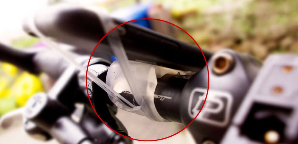 Eine weitere Verbesserung ist die "Polsterung" die nun unter dem Smartphone ist. In der Mitte ist der FINN deutlich dicker geworden und bietet durch die Konstruktion eine fast ebene Auflagefläche für das Smartphone. So vibriert es deutlich weniger und man kann auch bei holpriger Strecke besser das Display ablesen. Ich habe euch mal ein Foto von hinten gemacht, so dass ihr die Auflagefläche besser erkennen könnt (roter Kreis).