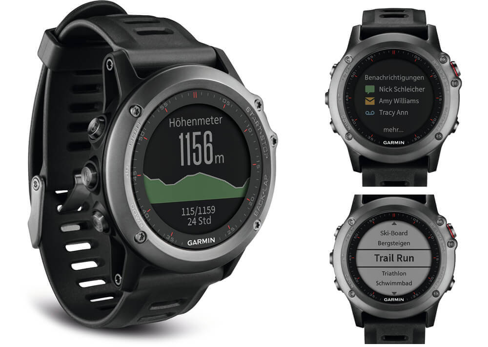 - Garmin Fenix 3 (kein Touch, aber hochauflösendes Farbdisplay)