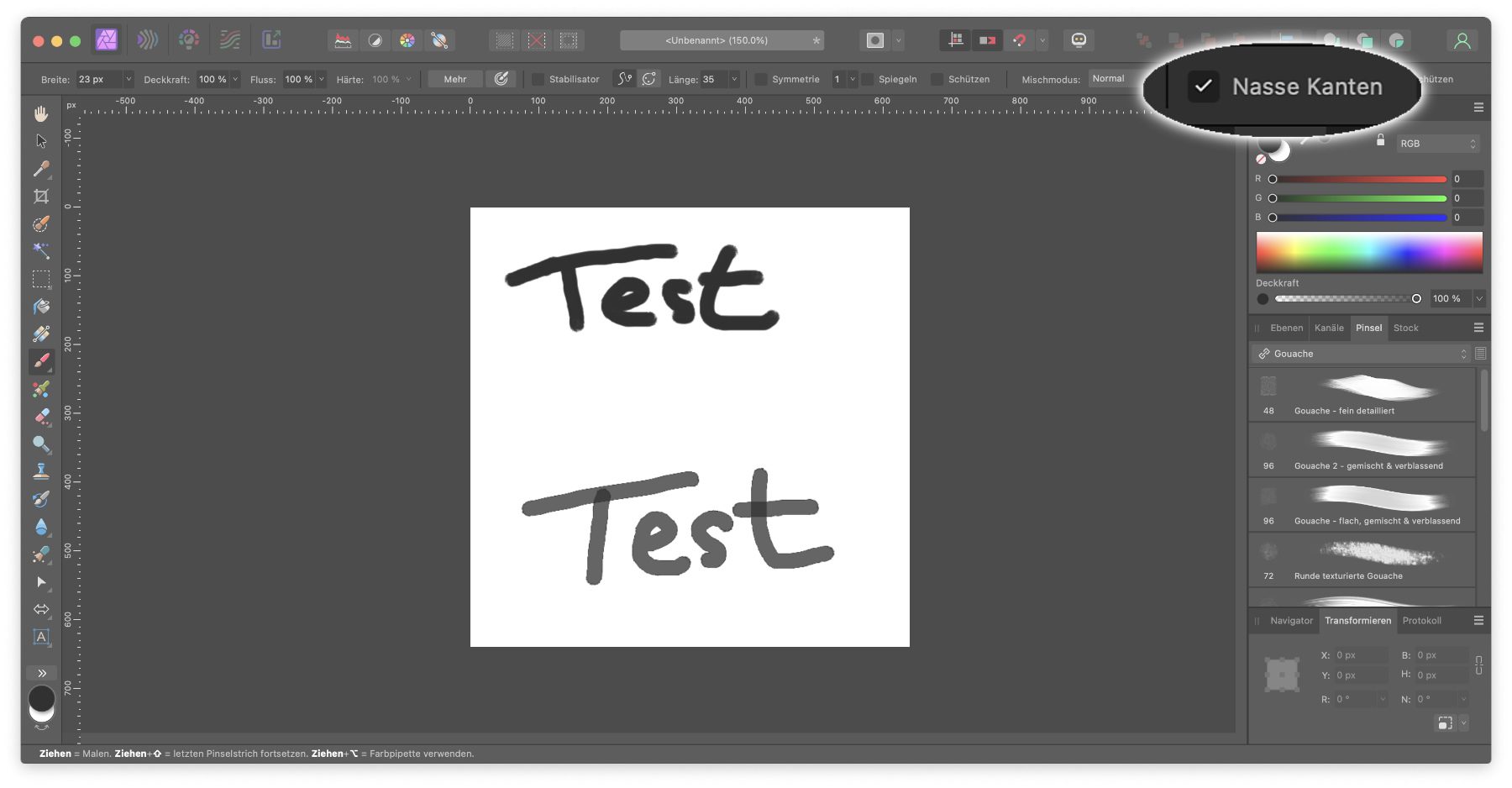 Affinity Photo Pinsel malt nicht mehr deckend: „Nasse Kanten“ sind aktiviert