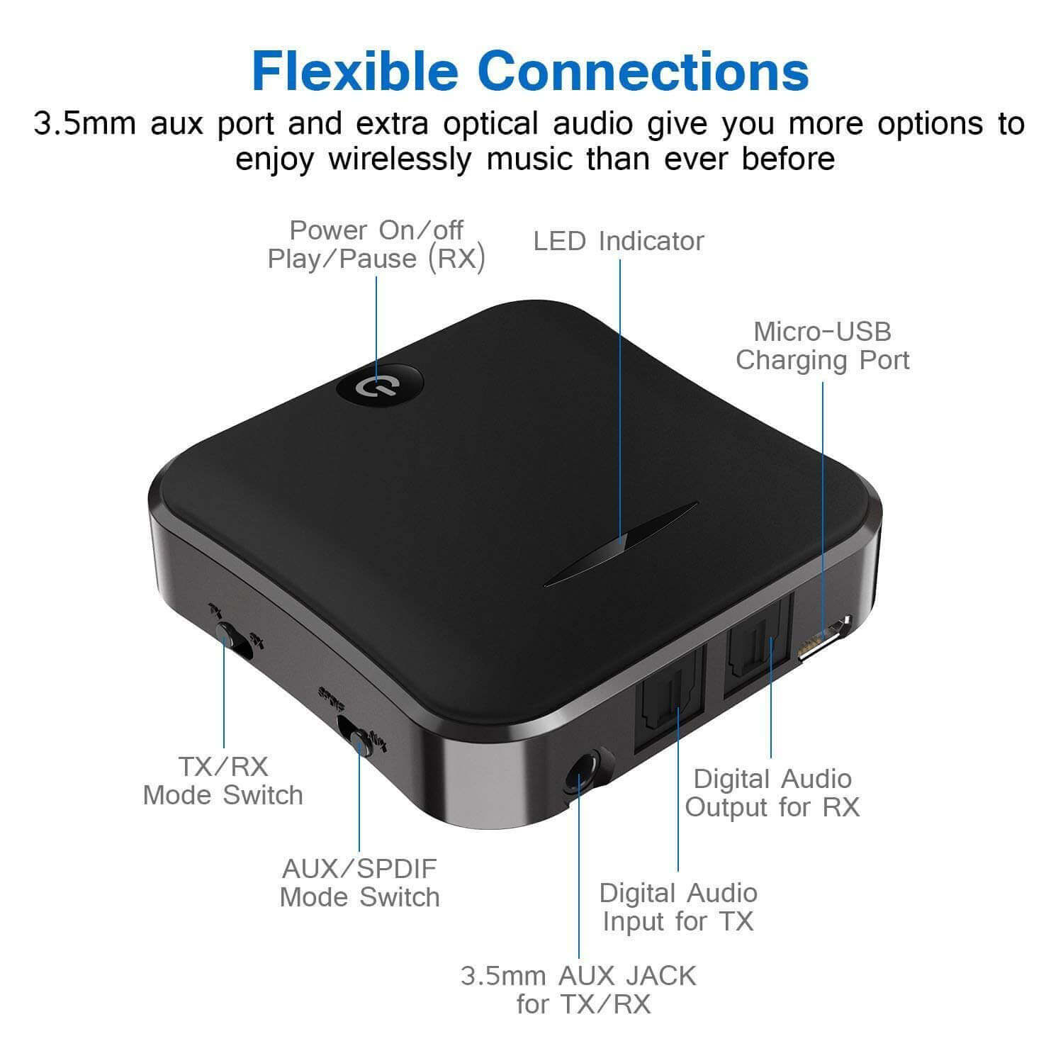 - 【Mehr Optionen, Mehr Flexibler - Digital optisch+ 3,5mm】Der Bluetooth Transmitter unterstützt sowohl 3,5mm (Aux and...