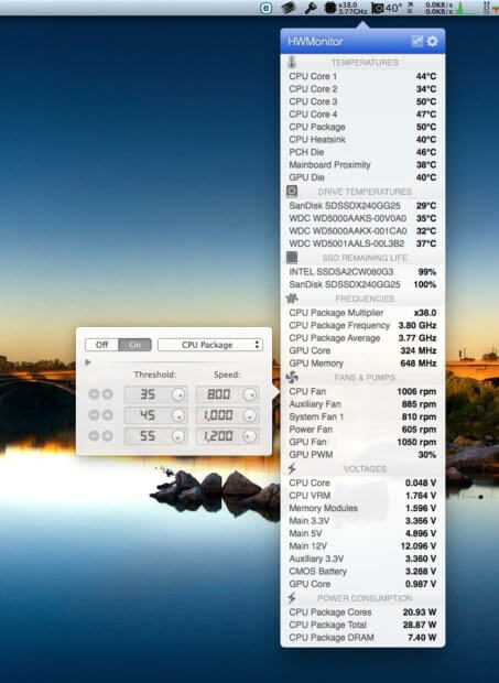 Vor ein paar Monaten habe ich euch im Rahmen des Laptopkühler-Test vom AUKEY CP-R2 den Systemmonitor bzw. System Monitor vorgestellt, dessen Demo-Version ich für die Testreihe am Mac benutzt habe. Das Tool zeigt die Prozessor-Temperatur, die aktuelle RAM-Auslastung und weitere Werte an. Nun bin ich aber über ein weiteres, im Vollumfang kostenloses Mac-Tool zum Auslesen von Temperaturen und vielen weiteren System-Werten gestolpert. Das Projekt HWSensors mit der macOS App HWMonitor zeigt wesentlich mehr Werte, hat eine bessere Benutzeroberfläche und bietet die Messwerte auch im Diagram als Graphen an.