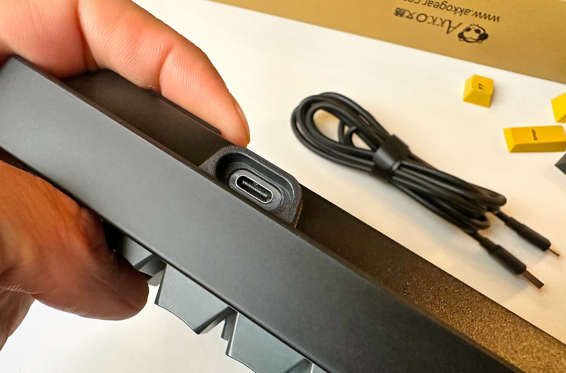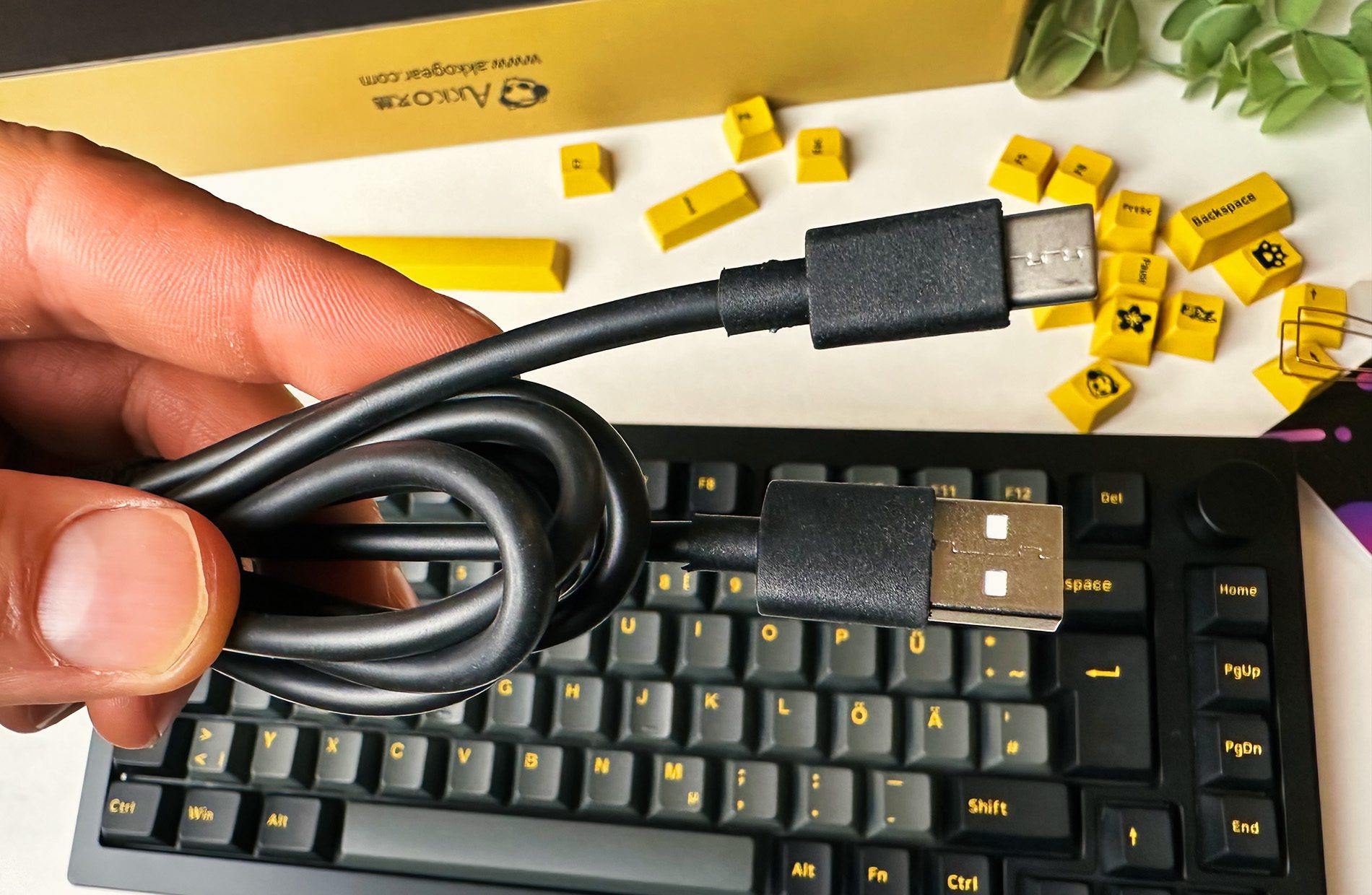 Das Schreibgefühl gefällt mir auch sehr gut und nach einer kurzem Umgewöhnung, da einige Tasten bei der Akko-Tastatur an einer anderen Stelle sind als bei meiner Logitech Craft, ging das Tippen gut von der Hand.