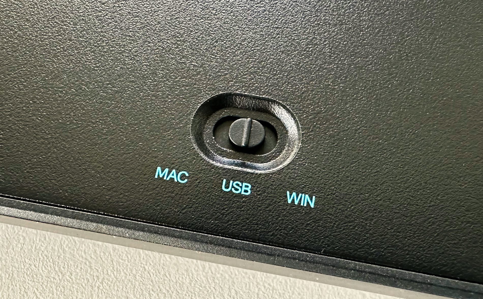 An der Unterseite der Tastatur findet man einen Umschalter, der mit „Win“, „USB“ und „Mac“ beschriftet ist. Mac und Win kann ich noch nachvollziehen, aber USB leuchtet mir nicht ein, denn die Tastatur funktioniert nur über USB.