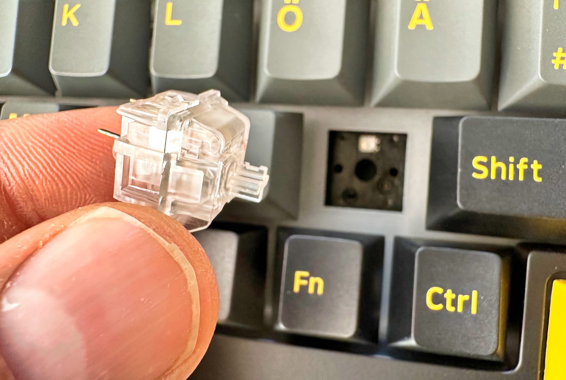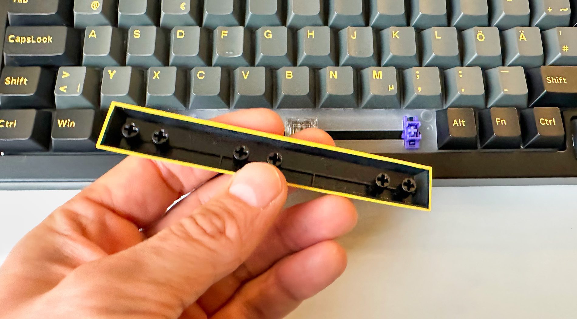 - Neben den Tasten kann man auch die Switches vom Board entfernen und tauschen.