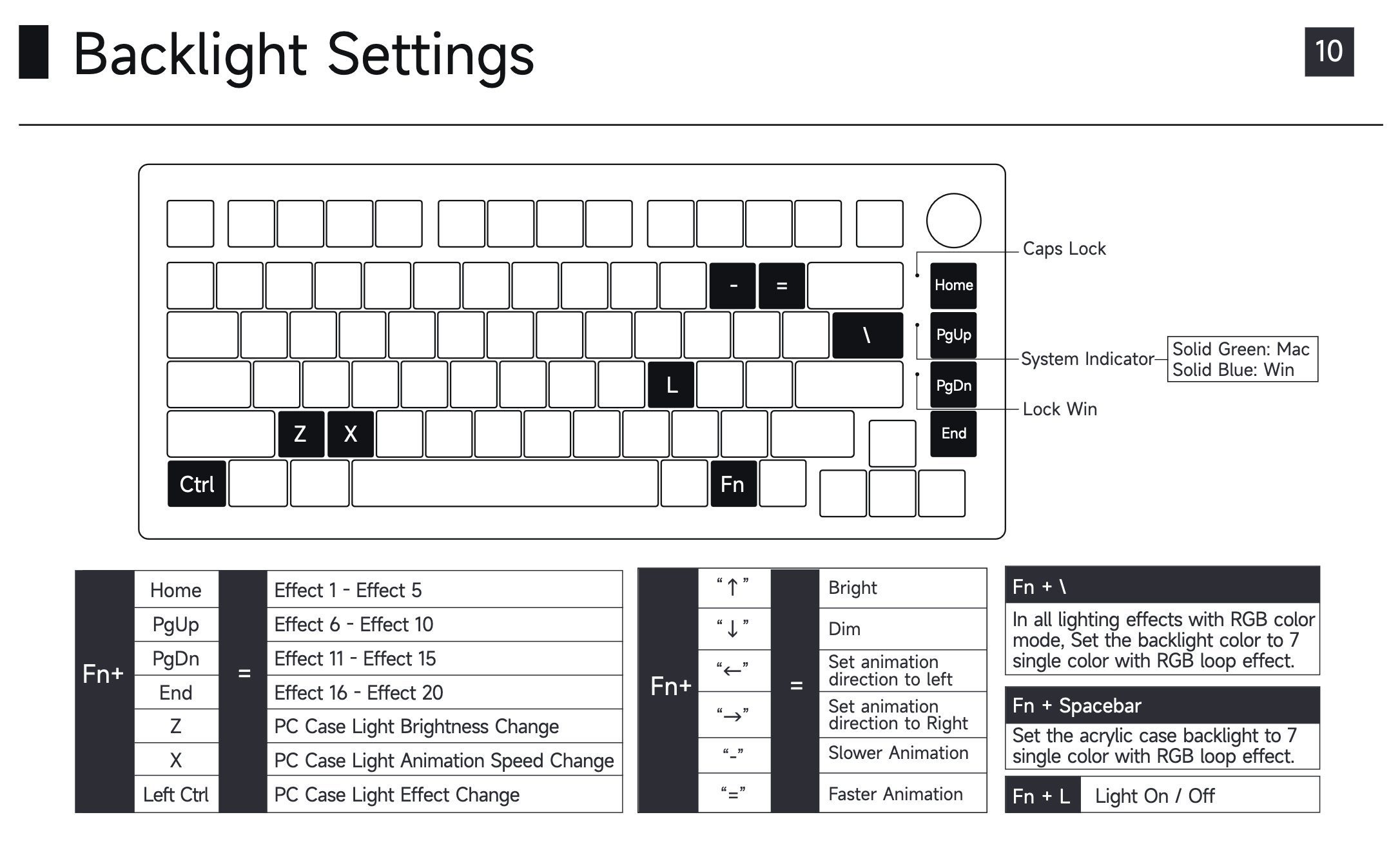 - Man kann die LED-Effekte der Tastatur mit den Tasten FN + Pageup oder Pagedown umstellen