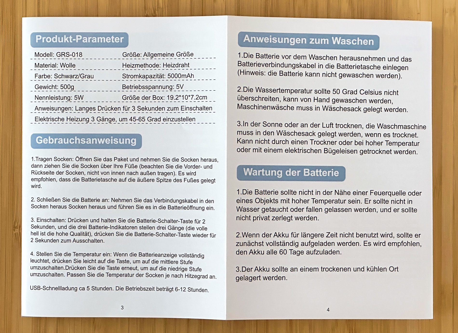 Als nun die Cyber Montag und Black Friday Events waren, habe ich dann mal zugeschlagen und mir die beheizbaren Socken von Neijiaer bestellt (Preis aktuell ca. 60 Euro).