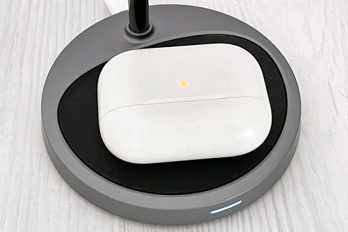 Besonders gut für den Alltag finde ich am Ladeständer von Choetech, dass die Ablage ein aufgelegtes Gerät kabellos lädt. So kann man oben sein iPhone füllen, während auf der Ablage die AirPods mit Strom versorgt werden.