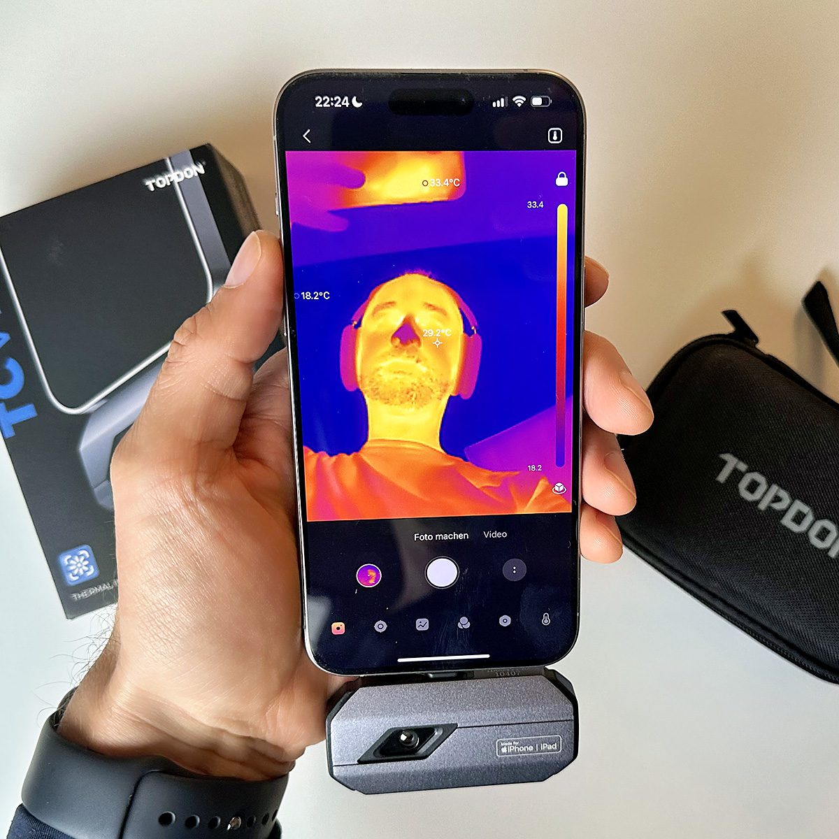 Natürlich konnte ich dann nicht nein sagen, als mir der Hersteller TOPDON die Wärmebildkamera TOPDON TC002C für einen Test zuschicken wollte. Die Kamera werde ich auch als Dauerleihgabe behalten, um in anderen Testberichten die Erwärmung von iPhone, iPad oder anderen Geräten zu prüfen.