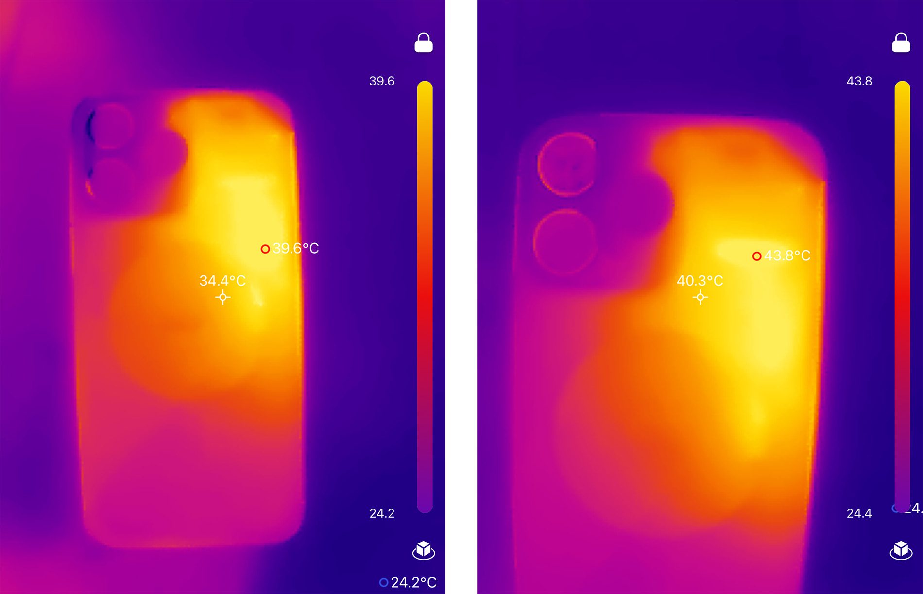 - Beim iPhone und iPad kann man sehen, wo die Geräte sich aufheizen und wie warm die wärmste Stelle wird.