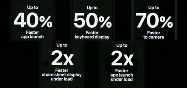 Das neue iOS 12 soll die Leute noch zufriedener machen, da die Performance im Durchschnitt verdoppelt werden kann. Dazu soll der CPU bei aufkommenden Aufgaben direkt voll beansprucht und dann schneller wieder entlastet werden. Bisher wird er langsam ansteigend belastet und langsam wieder freigegeben. Das beansprucht den Akku mehr als die neue Nutzungsart. Gerade für das iPhone 6 Plus wurde das hervorgehoben - folgende Zahlen aus der Praxis dazu: