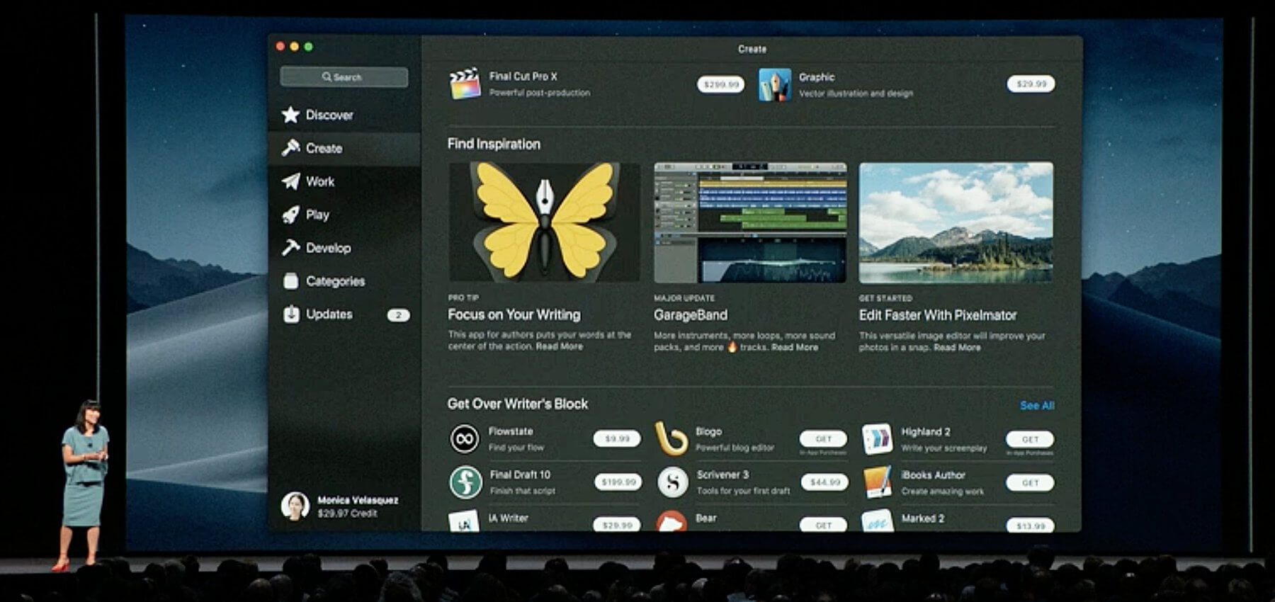 Der Mac App Store bekommt in Apple macOS 10.14 Mojave ein komplettes Make-Over. Nicht nur wird es ein neues Design geben, sondern auch ganz neue Möglichkeiten für Entwickler, ihre Apps zu präsentieren. So wird es in Zukunft auch Demo-Videos geben, welche die Apps und Spiele in Aktion zeigen und so besser darstellen können, welchen Nutzen der Anwender aus ihnen ziehen kann. Neben dem „Kategorien“-Tab wird es zudem die Bereiche „Create“, „Work“, „Play“ und „Develop“ geben (bzw. entsprechende Pendants auf Deutsch).
