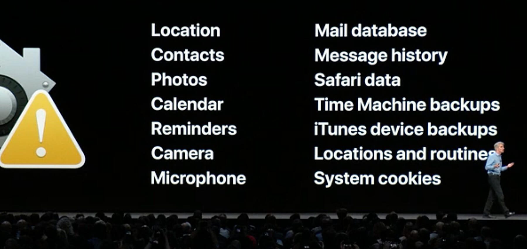 Die Sicherheit des Systems und der Schutz persönlicher Daten soll auf dem Mac weiterhin eine große Rolle spielen, weshalb sie unter macOS 10.14 Mojave weiter ausgebaut werden wird. Neben Standort, Kontakten, Fotos, Kalender-Informationen und Erinnerungen werden deshalb ab Herbst auch die Kamera und das Mikrofon besser geschützt.