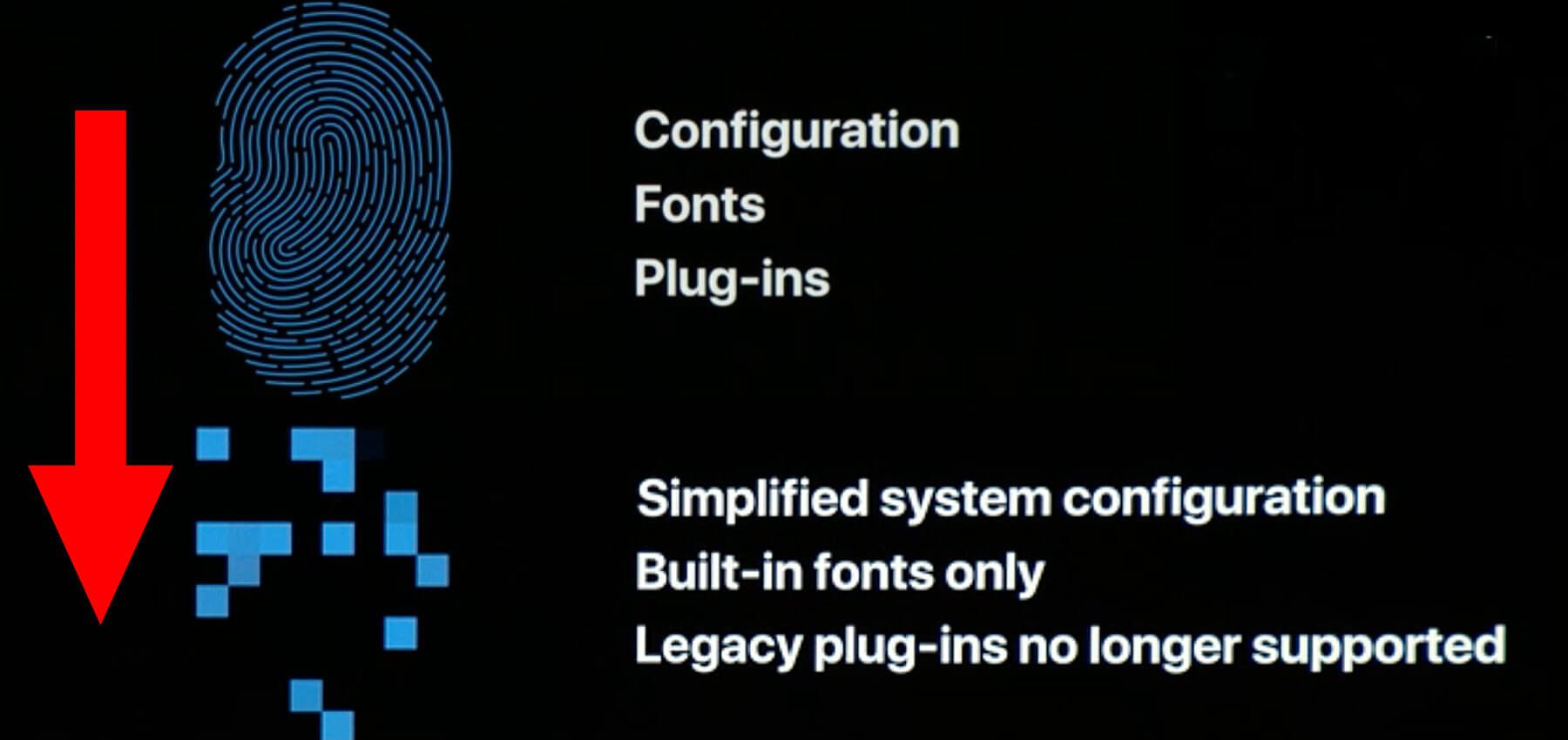 Das sogenannte „Fingerprinting“, das mit Hilfe der individuellen Daten des verwendeten Geräts inkl. der erkennbaren Hardware funktioniert und so schon viel Aufschluss über den Nutzer gibt, soll unterbunden werden. Es sollen weniger Details zum Mac, zu dessen Version, zur verwendeten Hardware und zur genutzten Software (Betriebssystem, Browser, etc.) weitergegeben werden, sodass bestimmte Mac-Modelle im Internet „alle gleich aussehen“.