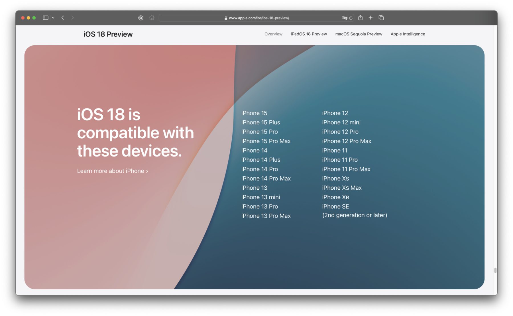 Alle iPhones, die auch das Upgrade auf iOS 17 installieren konnten, sind mit dem gestern vorgestellten iOS 18 kompatibel. Natürlich kommen zur Liste des letzten Jahres noch die iPhone-15-Reihe sowie die für den Herbst zu erwartende 16er-Reihe dazu. Die Liste aktuell nutzbarer Geräte sieht insgesamt folgendermaßen aus: