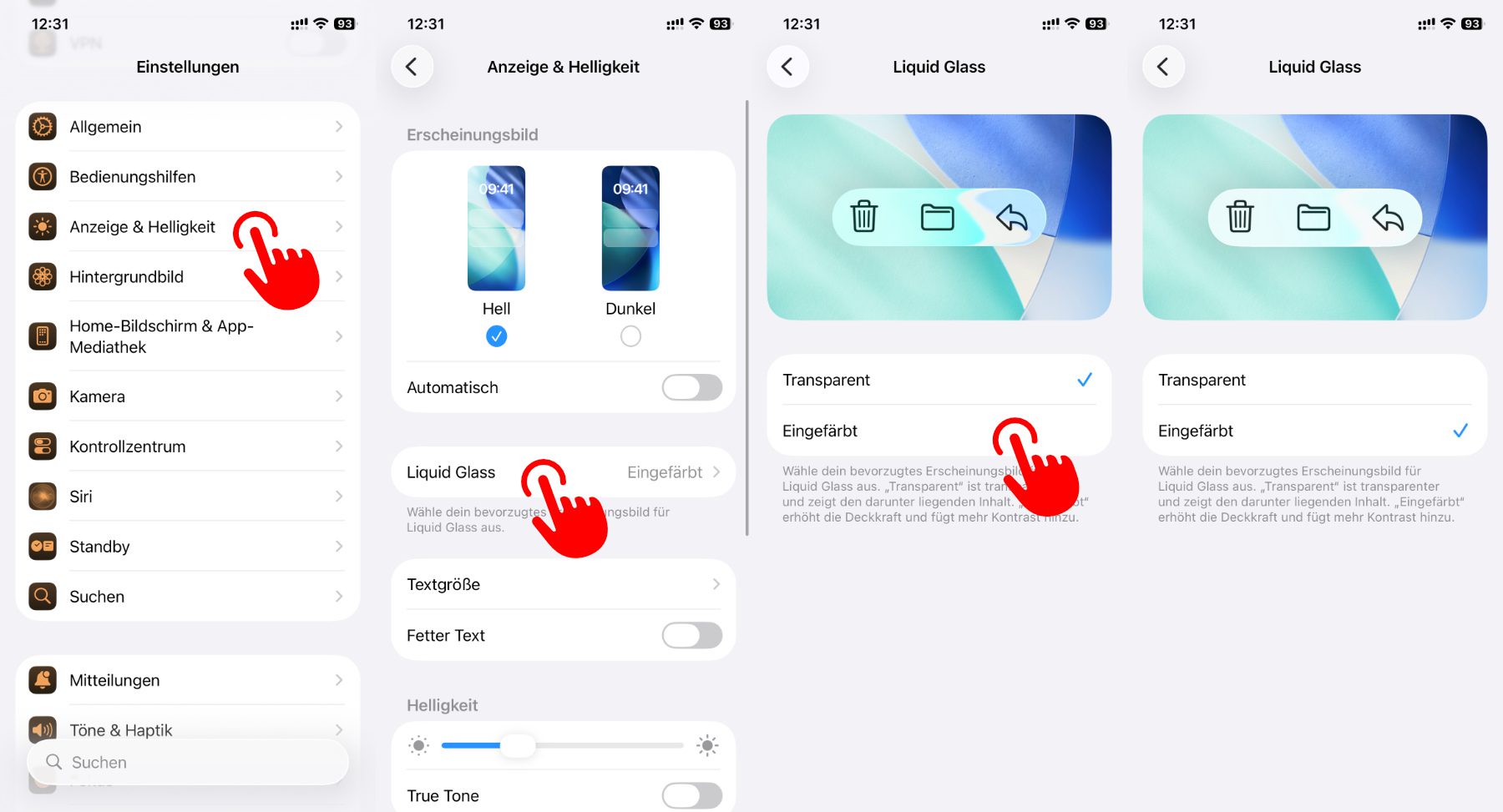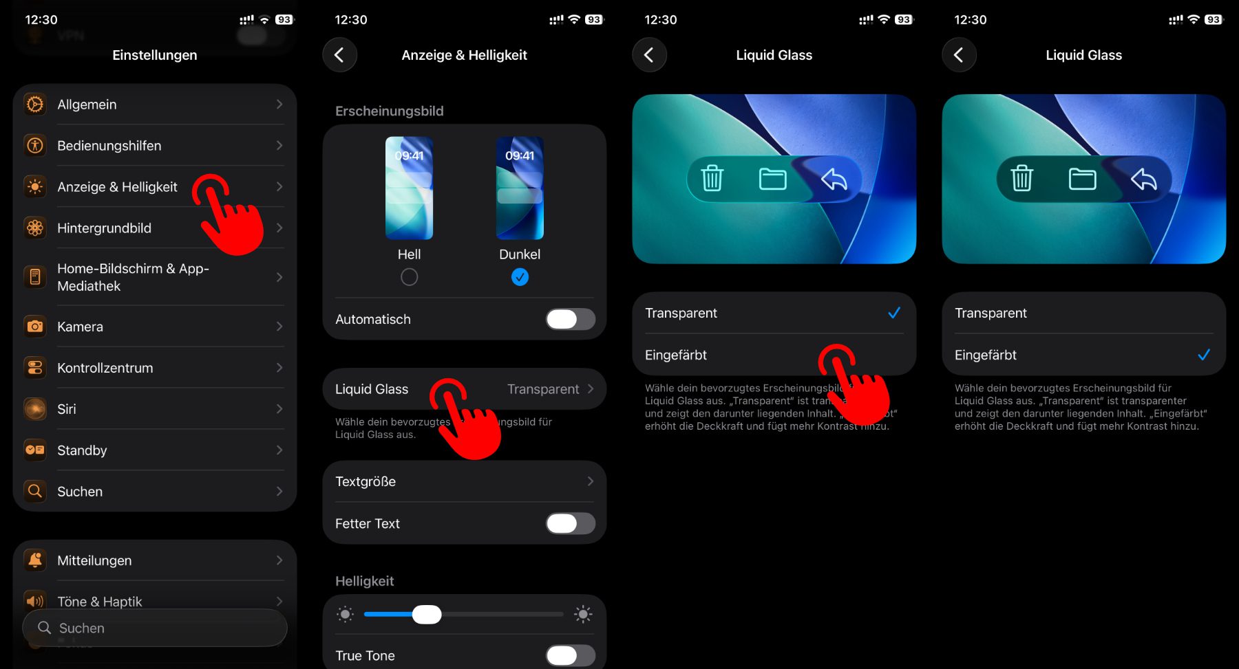 Anleitung: Ab iOS 26.1 Liquid Glass transparent oder eingefärbt verwenden