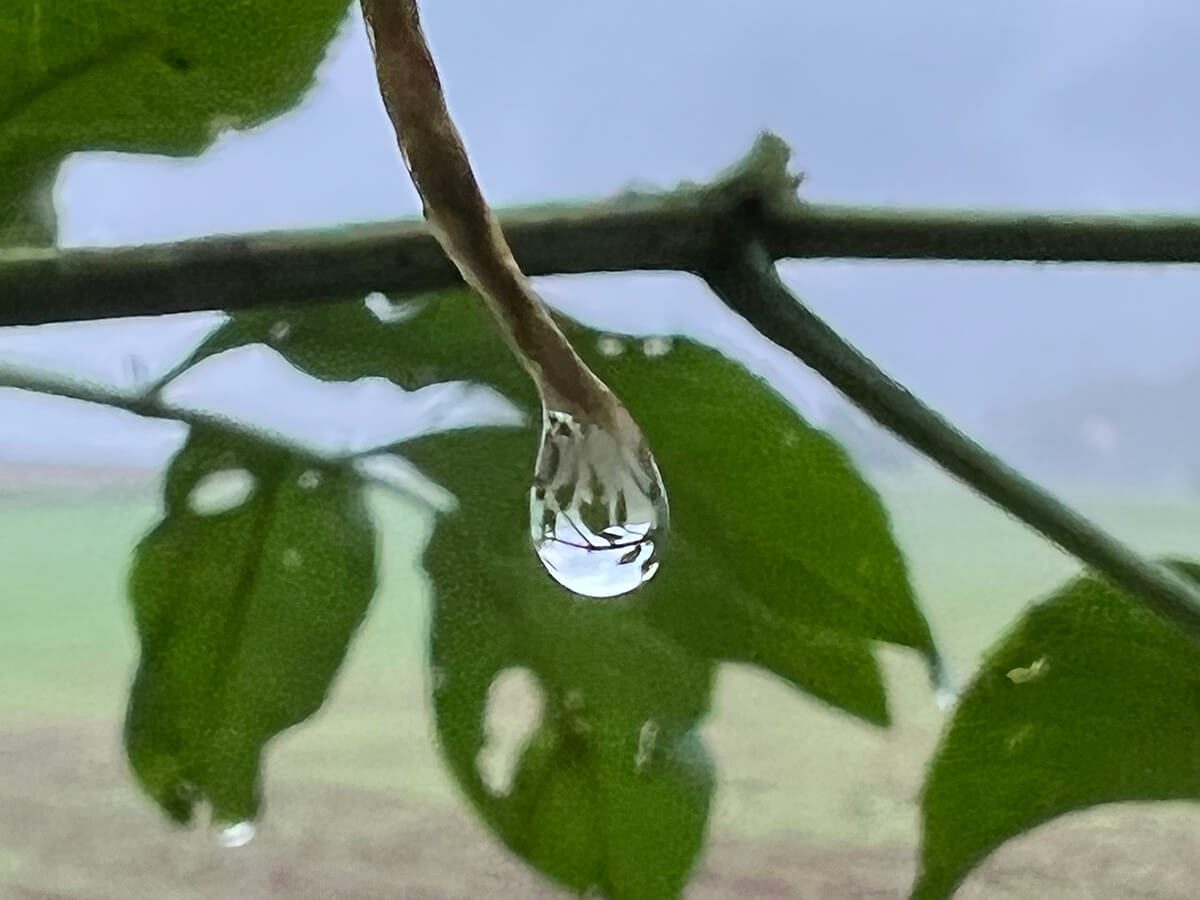 Ich hatte einmal versucht, einen Wassertropfen an einem Blatt zu fotografieren, aber dadurch, dass die Kamera ständig am Umschalten war und dann noch der Wind das Blatt bewegt hat, war es fast unmöglich. Von fast zehn Aufnahmen, war letztendlich nur das folgende Foto halbwegs brauchbar.