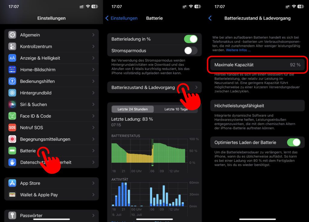 iPhone Batterie-Kapazität in den Einstellungen einsehen