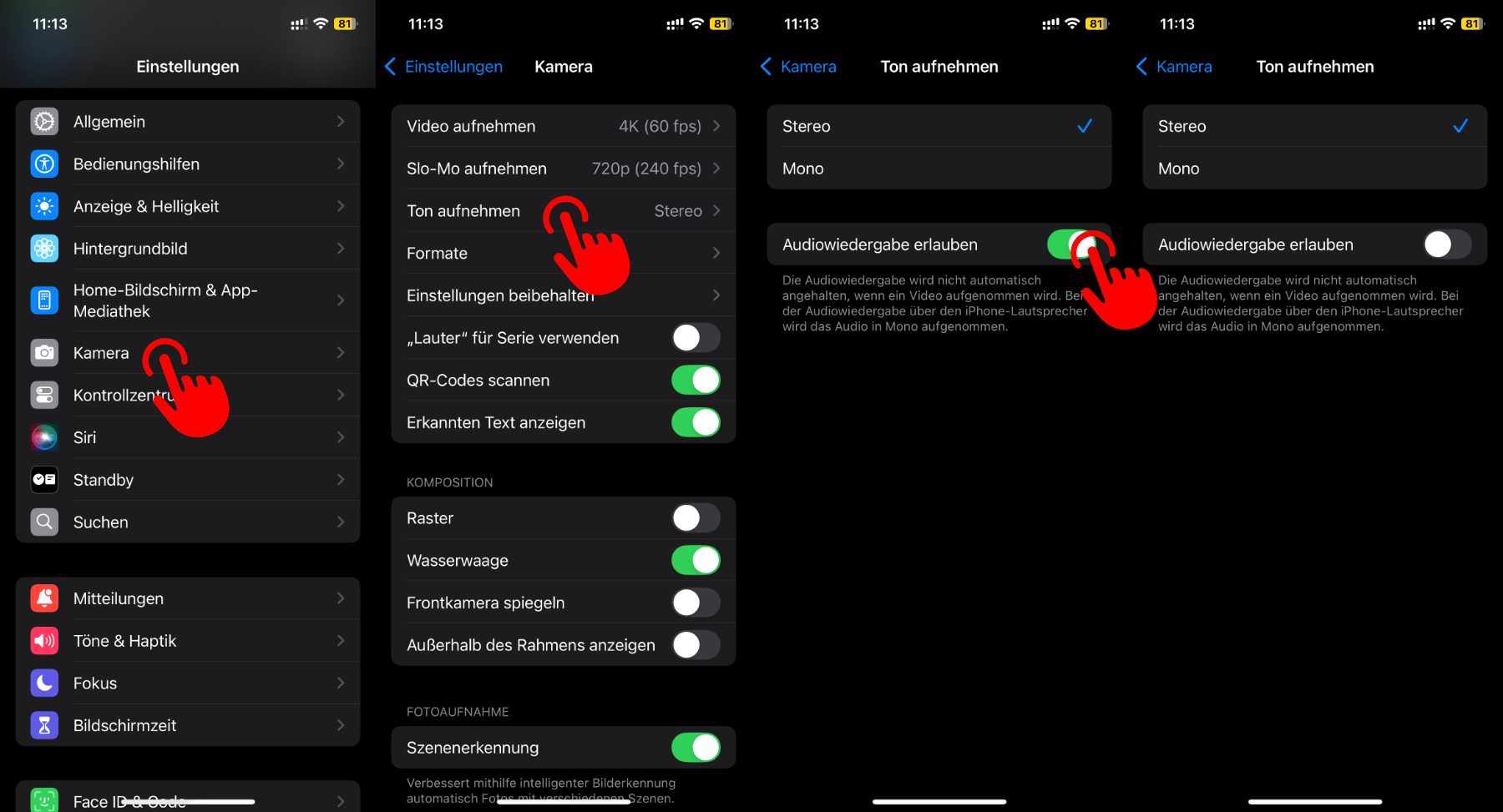 Am iPhone die Videoaufnahme bei gleichzeitiger Audiowiedergabe einrichten