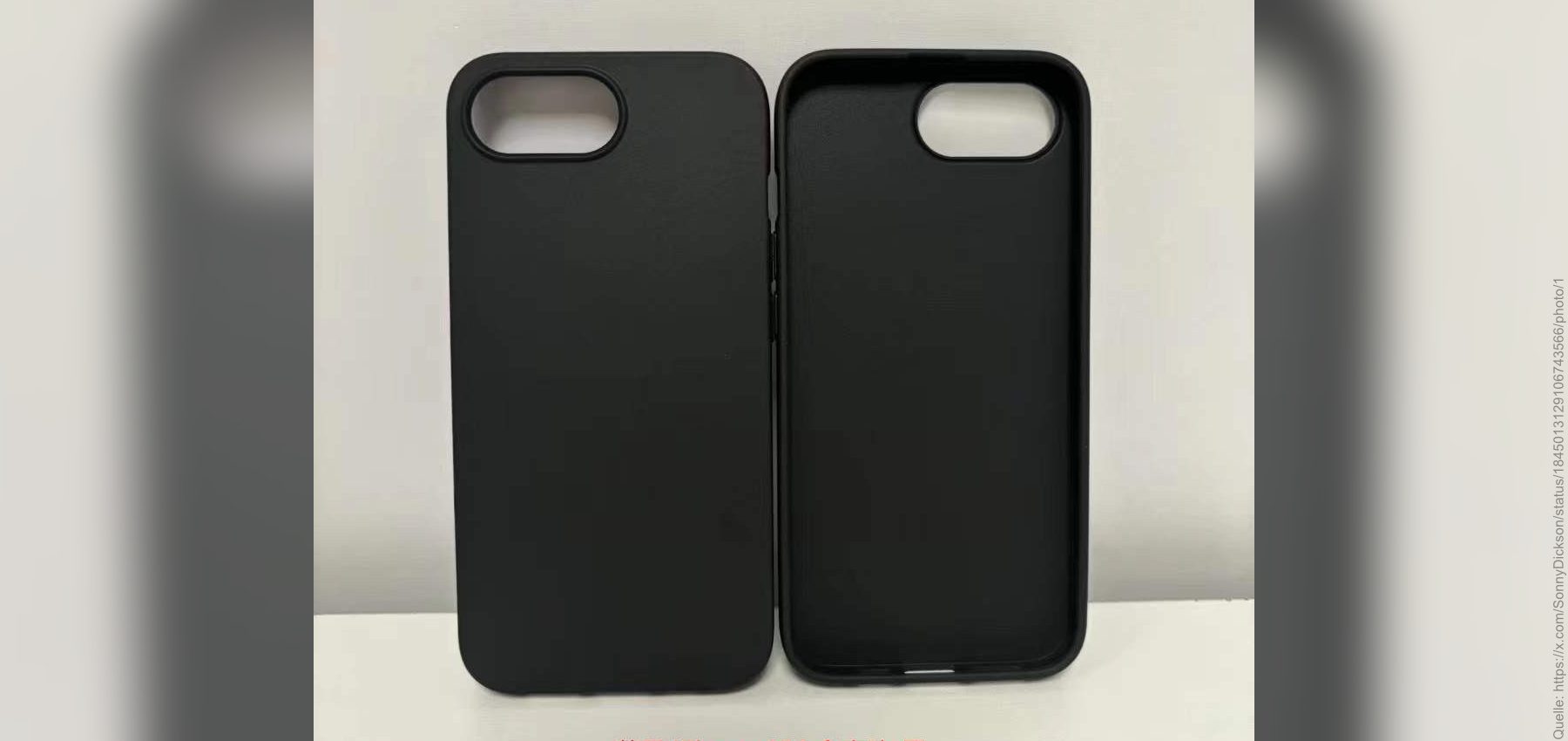 Zu finden ist die Aufnahme auf dem X-Profil von Sonny Dickson. Als erstes fällt auf dem Foto der angeblichen iPhone-Hülle für das SE-Modell der 4. Generation die Aussparung für die Kamera auf. Die Kamera auf der Rückseite des Geräts wird demnach weiterhin mit einem einzelnen Objektiv auskommen. Die ovale Form der Aussparung ergibt sich daraus, dass sich neben der Kameralinse auch noch ein Mikrofon und der LED-Blitz befinden werden.