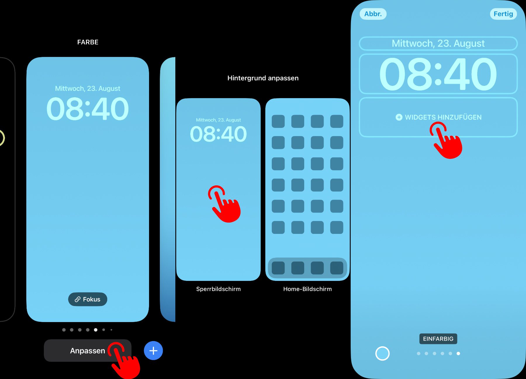 - Tippt unter der Uhr auf Widgets hinzufügen
