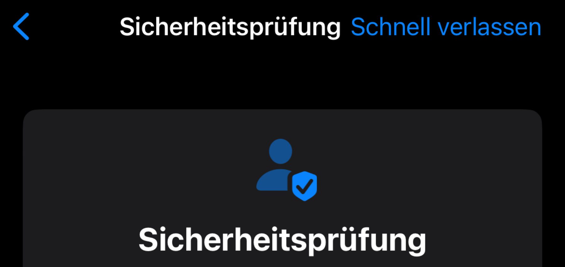 In manchen Situationen kann es hilfreich sein, die Änderungen erst an einem sicheren Ort vorzunehmen. Ist das nicht möglich oder soll der Weg zu dem Ort nicht mit einer bestimmten Person geteilt werden können, muss vielleicht in deren Beisein gehandelt werden. Um die Änderung der Teilen-Einstellungen über die Sicherheitsprüfung sofort verbergen zu können, gibt es die Schnell verlassen Schaltfläche.