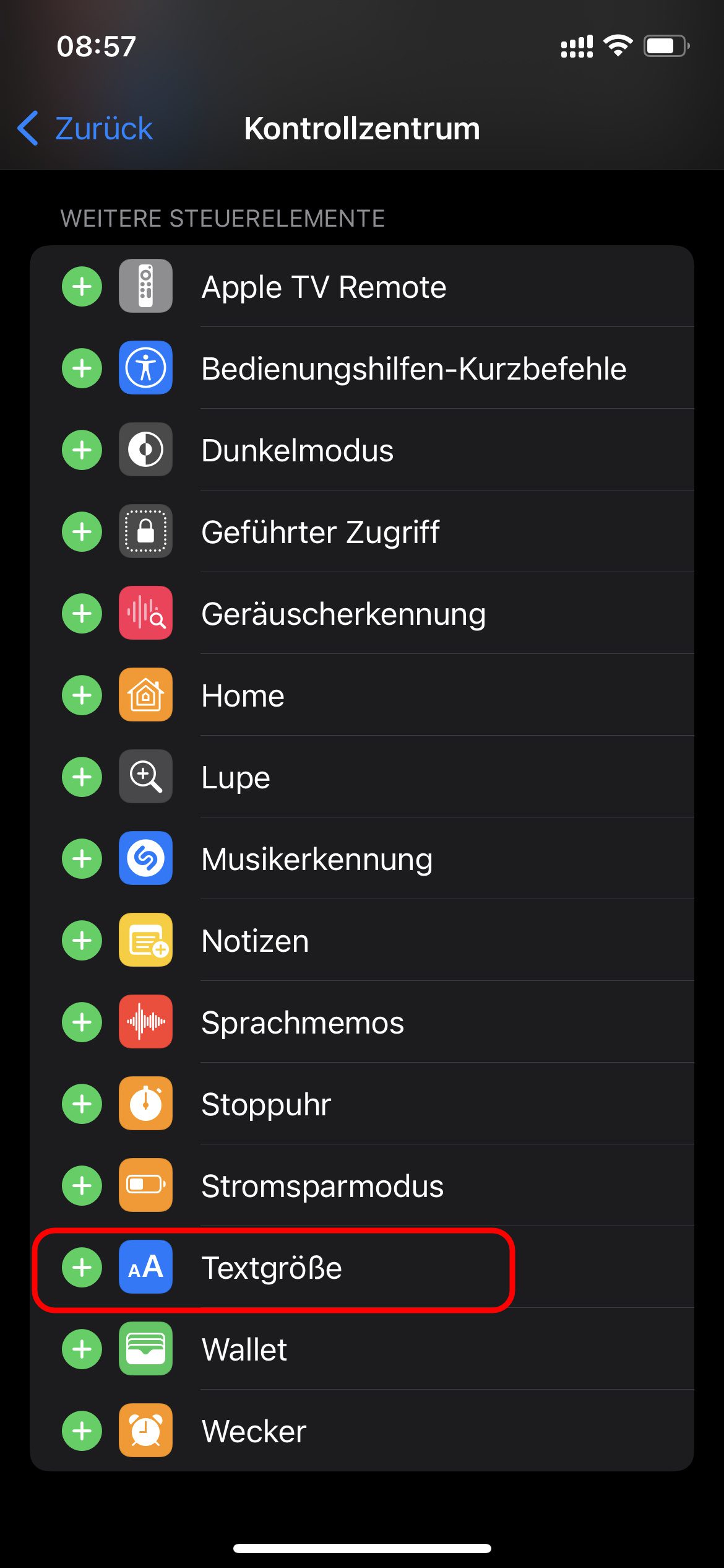 iPhone: Textgröße als Option im Kontrollzentrum anlegen