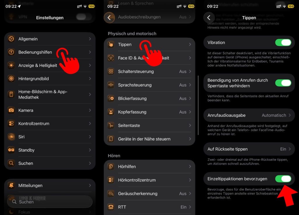 - Unter „Physisch und motorisch“ den ersten Punkt Tippen auswählen