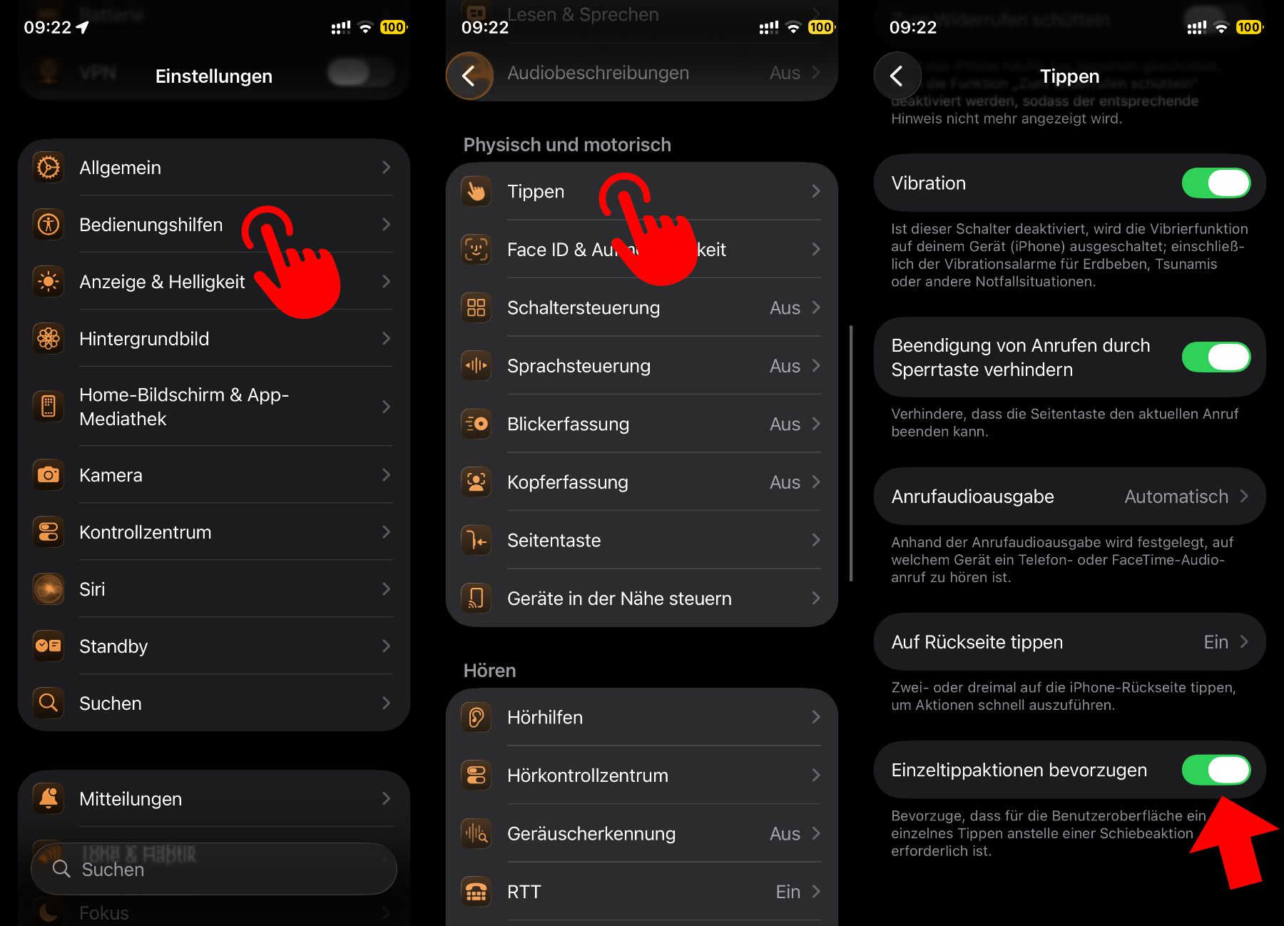 - Unter „Physisch und motorisch“ den ersten Punkt Tippen auswählen