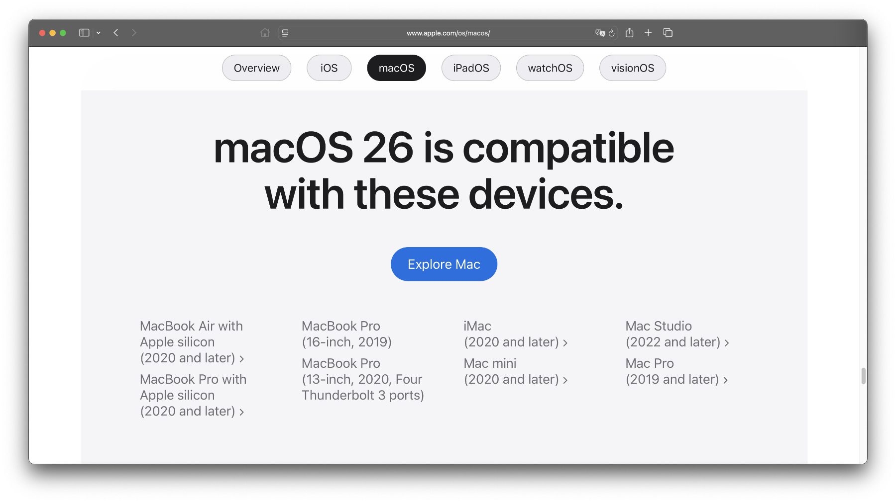 Auf diesen Mac-Modellen kann macOS 26 Tahoe installiert werden:
